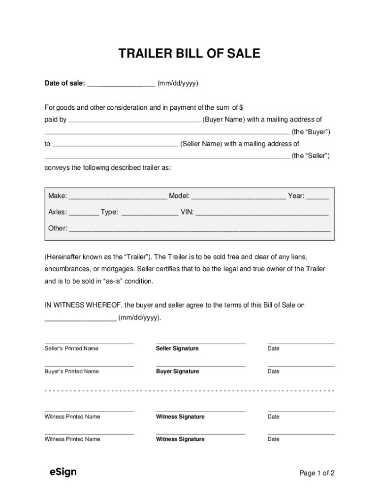 Get the free bill of sale form for trailer - fill online, printable, fillable ...