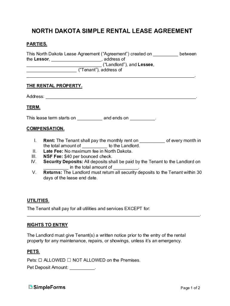 Get the free North Dakota Simple Residential Rental Lease Agreement. North DakotaSimple Residenti...