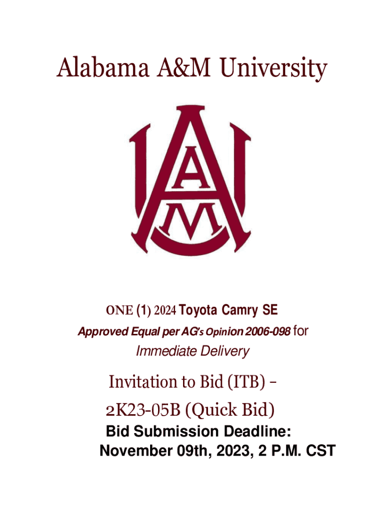 Alabama A&M University ONE (1) 2024 Toyota Camry SE