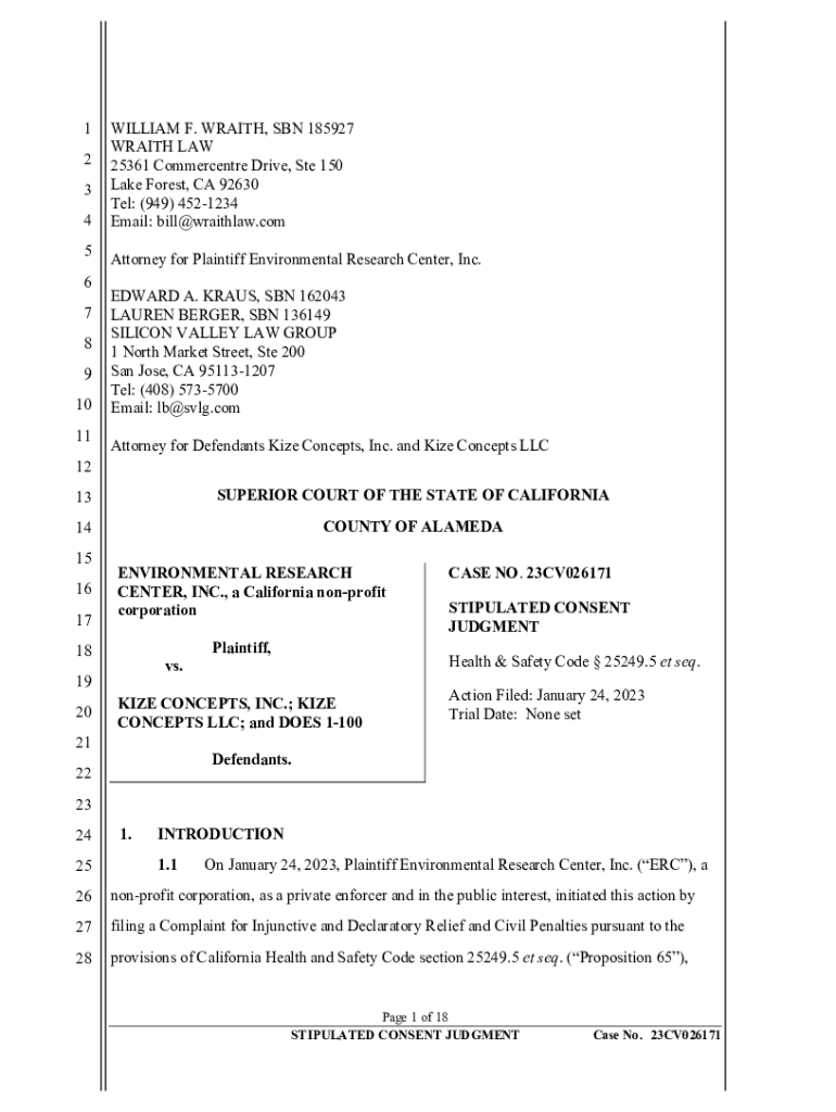 Get the free Environmental Research Center v. Heartland Products - oag ca