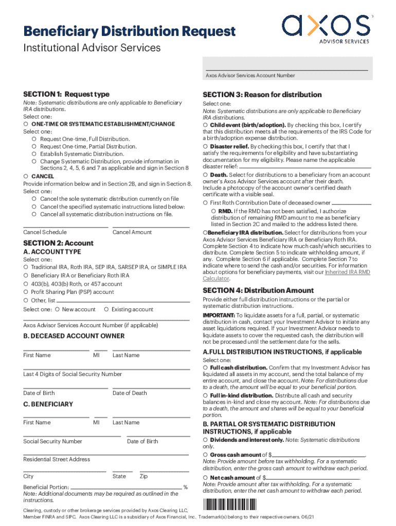 Get the free Beneficiary Distribution Request. Institutional Advisor Services