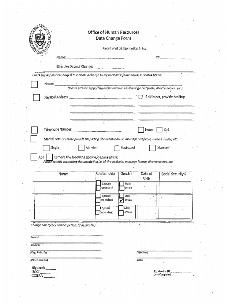 Please print all Information In ;NK.liiifiName: ___Effective Date of Change: ___Check the appropriate box/BS ta Indicate a change to my personal
