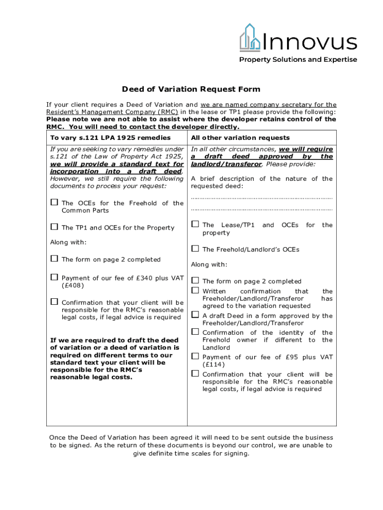 If your client requires a Deed of Variation, and we are named company secretary for the