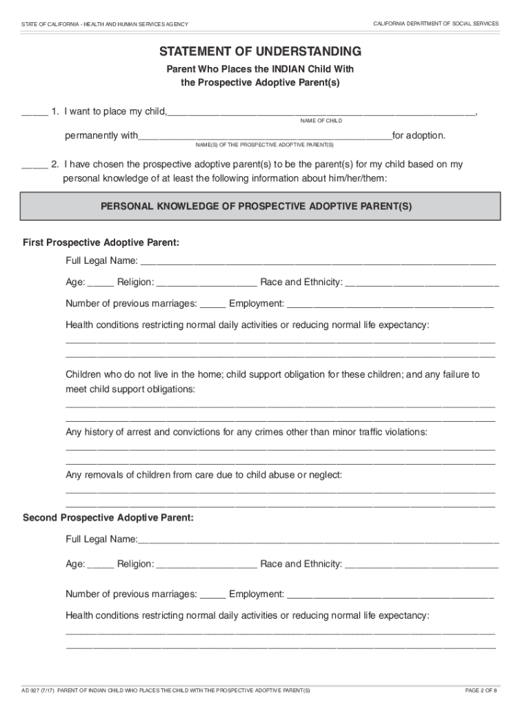 STATE OF CALIFORNIA HEALTH AND HUMAN SERVICES AGENCYCALIFORNIA DEPARTMENT OF SOCIAL SERVICESSTATEMENT OF UNDERSTANDING