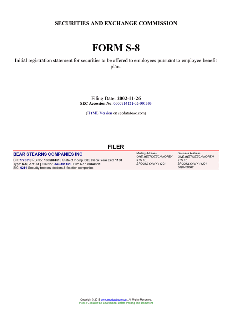 Get the free BEAR STEARNS COMPANIES INC (Form. Accession Number
