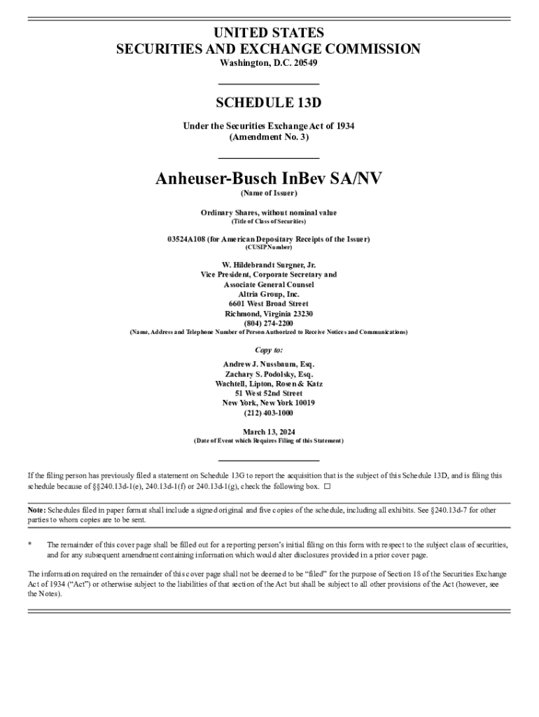 Get the free BUD : S-8 Initial registration statement for securities ...