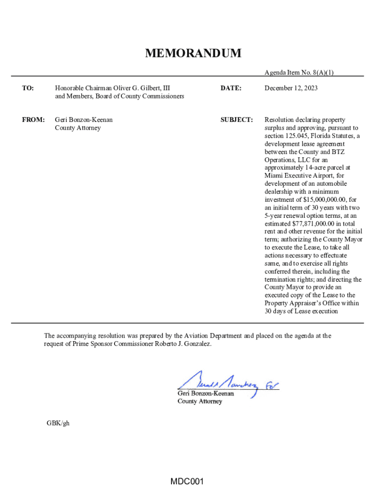 and Members, Board of County CommissionersDATE:\'HFHPEHU, 2023FROM:Germ BonzonKeenan