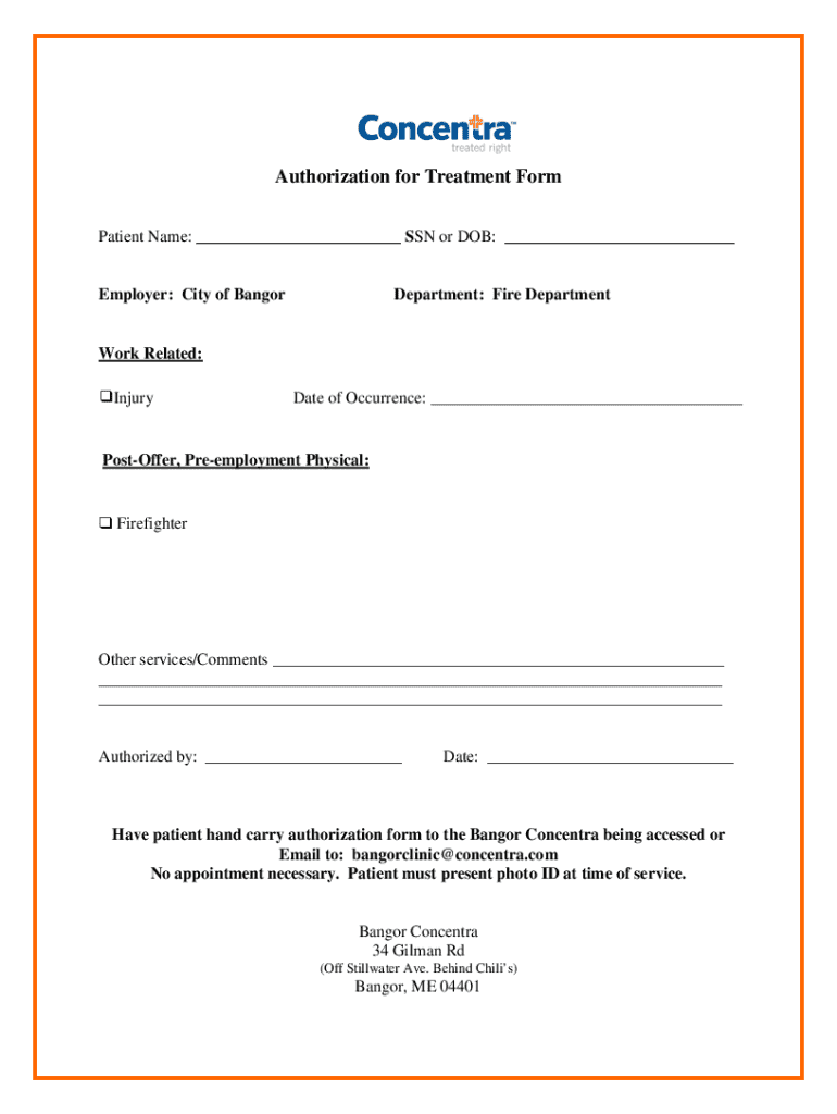 Authorization For Treatment Form is not the form you're looking for?Search for another form here.