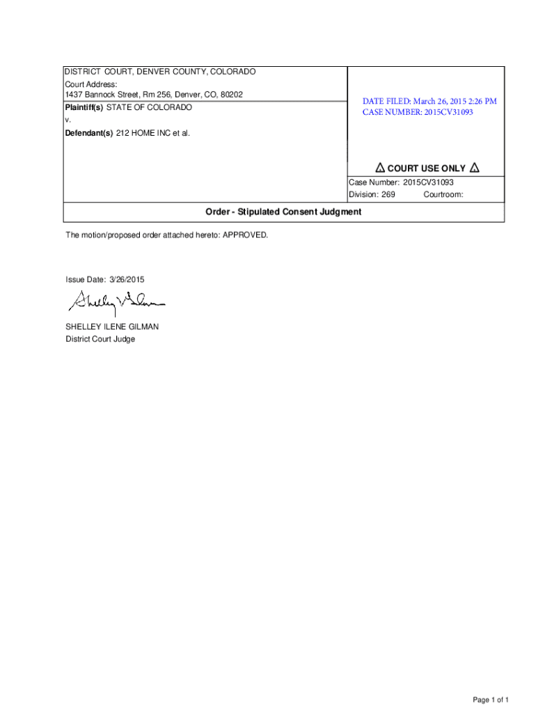 Get the free Order - Stipulated Consent Judgment Stop Fraud Colorado