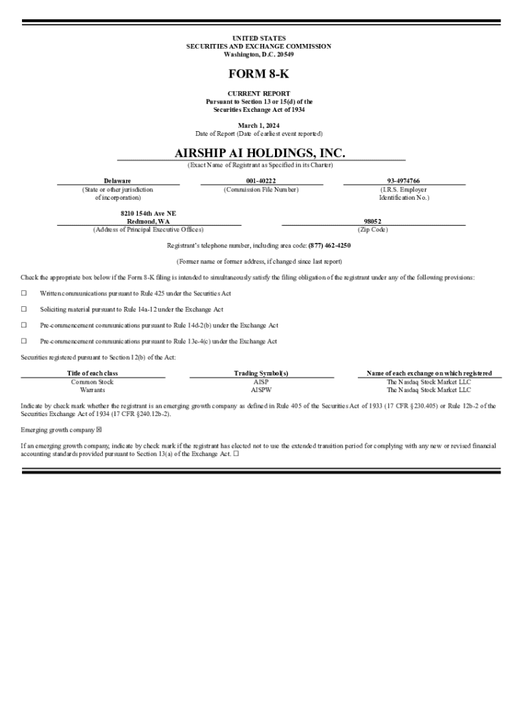 UNITED STATES SECURITIES AND EXCHANGE COMMISSION Washington, D.C. 20549FORM 8K CURRENT REPORT Pursuant to Section 13 or 15(d) of the Securities Exchange Act of 1934 March 1, 2024 Date of Report (Date