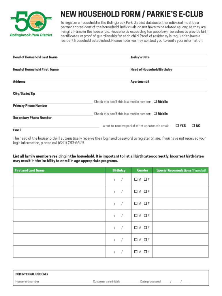 Get the free NEW HOUSEHOLD FORM / PARKIE'S E-CLUB - Bolingbrook Park ...