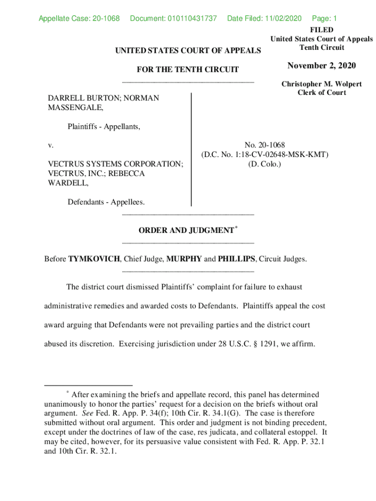 Get the free Appellate Case: 20-1068