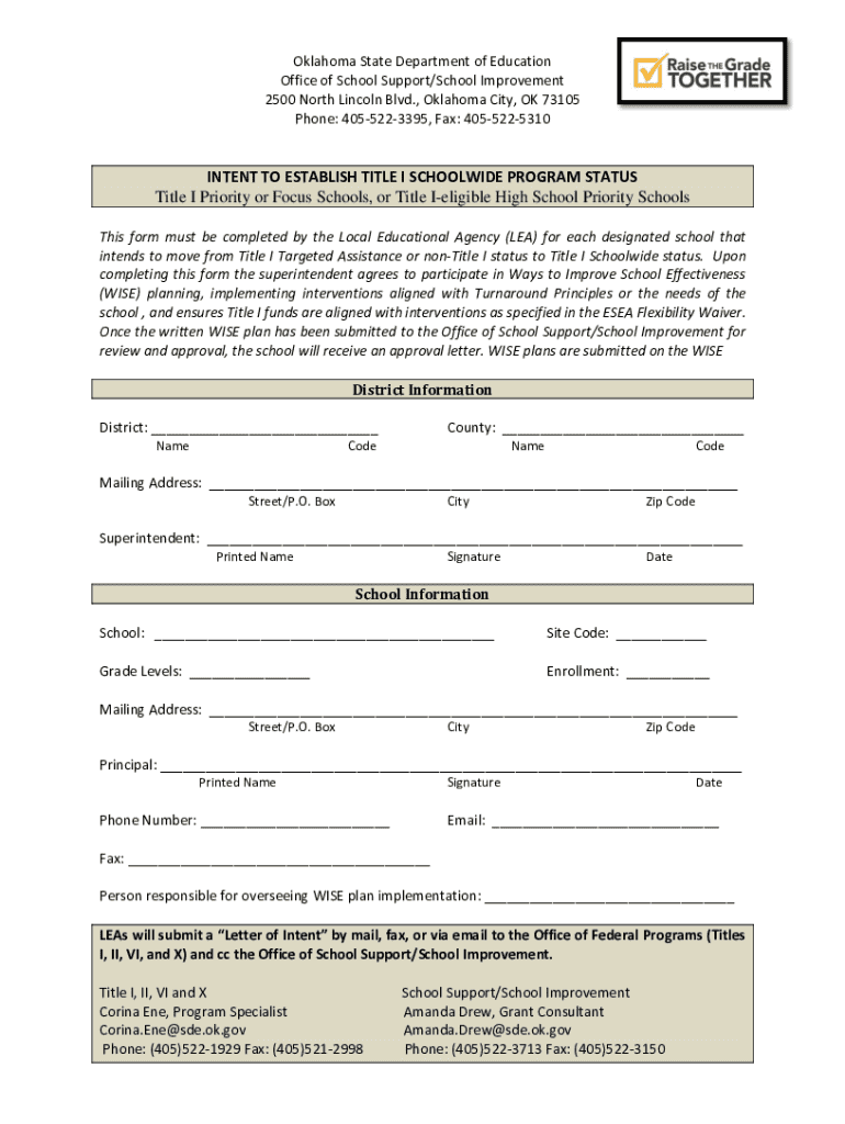 Phone: 4055223395, Fax: 4055225310INTENT TO ESTABLISH TITLE I SCHOOLWIDE
