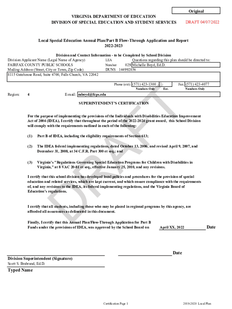 DIVISION OF SPECIAL EDUCATION AND STUDENT SERVICESDRAFT 04/07/2022Local Special Education Annual Plan/Part B FlowThrough Application and Report