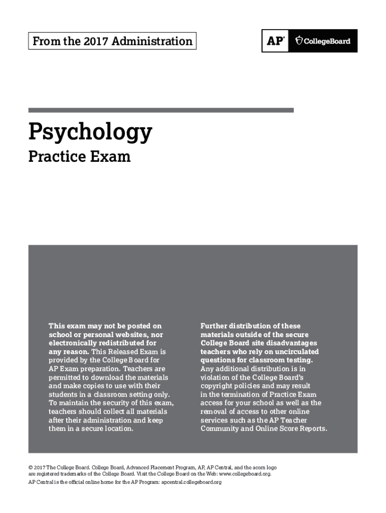 AP Psychology past exams refer to previous versions of the Advanced Placement Psychology exam, which consists of multiple-choice questions and free-response questions designed to assess a student's understanding of psychology concepts.
