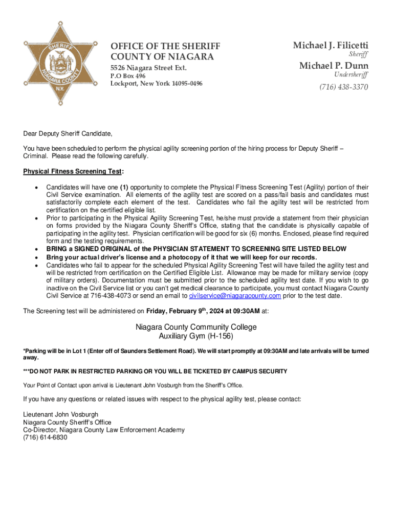 Lock port, New York 140950496Undersheriff(716) 4383370Dear Deputy Sheriff Candidate,