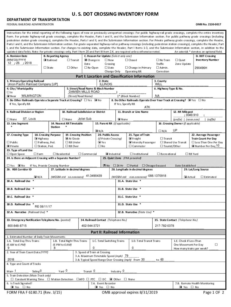 DEPARTMENT OF TRANSPORTATION. S. DOT CROSSING INVENTORY FORM