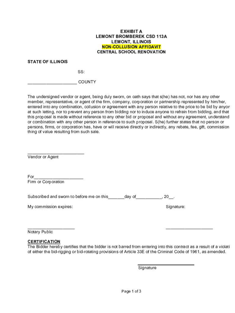 Get the free NON-COLLUSION AFFIDAVIT (Complete and Submit with ...