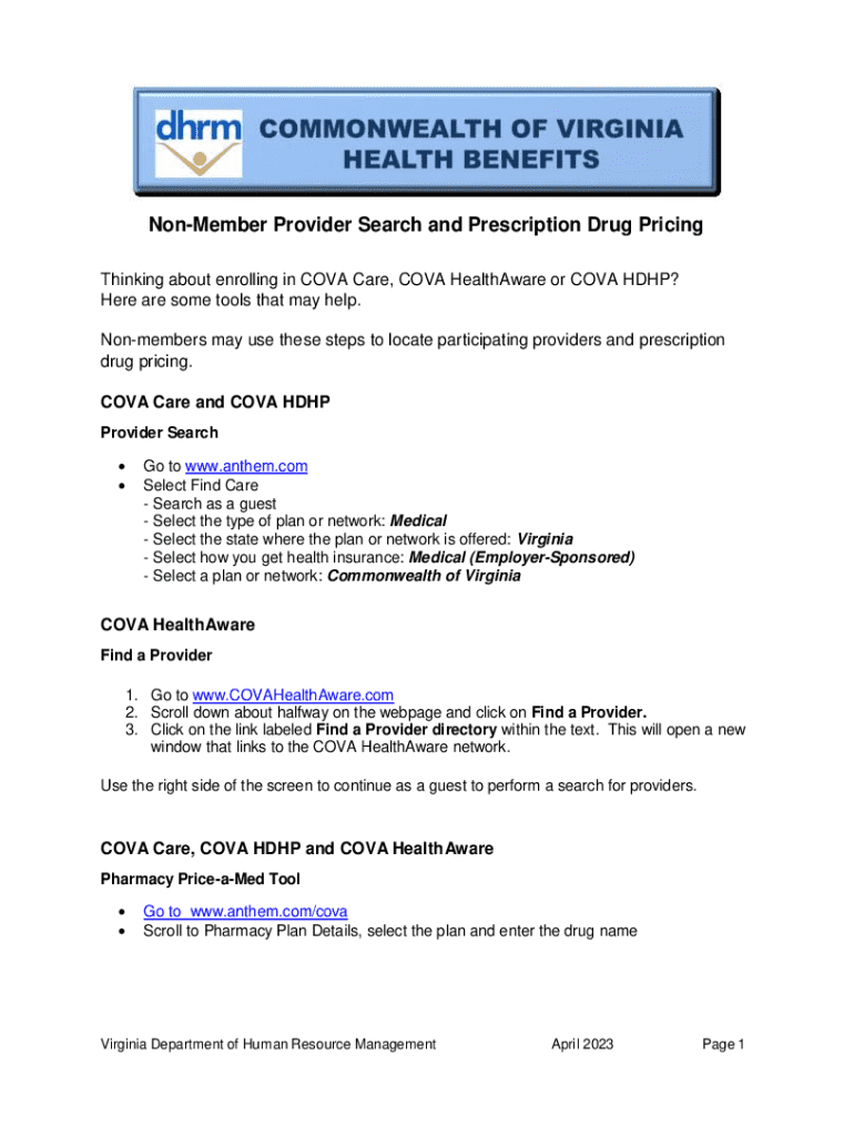Get the free Non-Member Provider Search and Prescription Drug Pricing