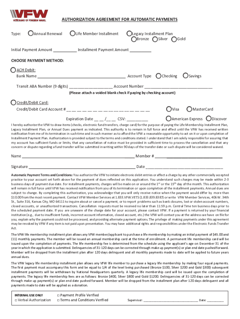 FORM REAUTHORIZATION AGREEMENT FOR AUTOMATIC PAYMENTS