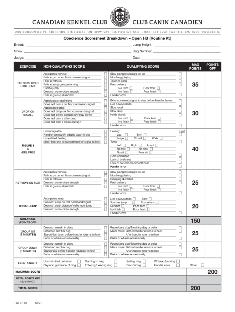 How to fill out obedience scoresheet breakdownopen a?