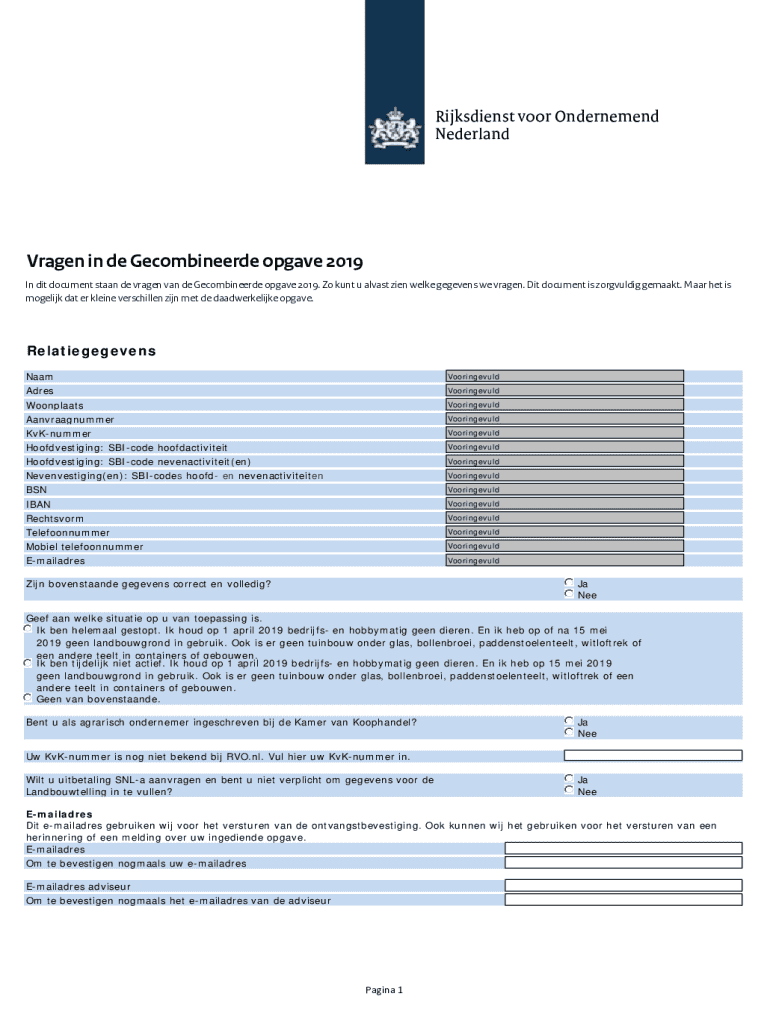 NederlandVragen in de Gecombineerde op gave 2019