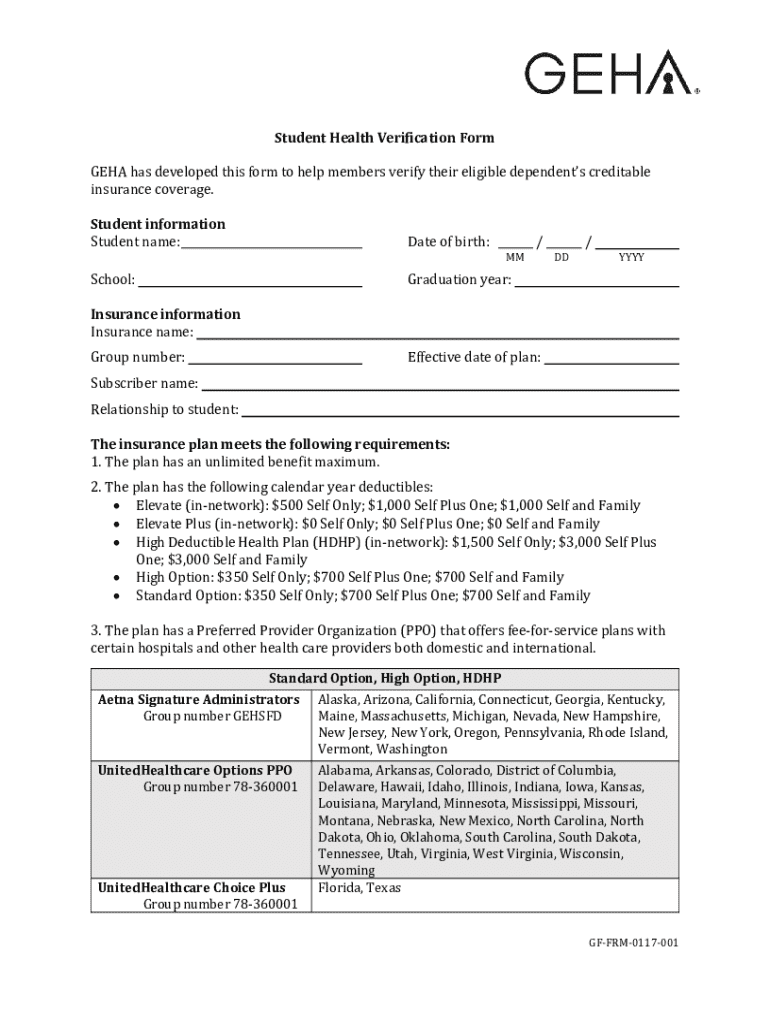 Student Health Verification Form