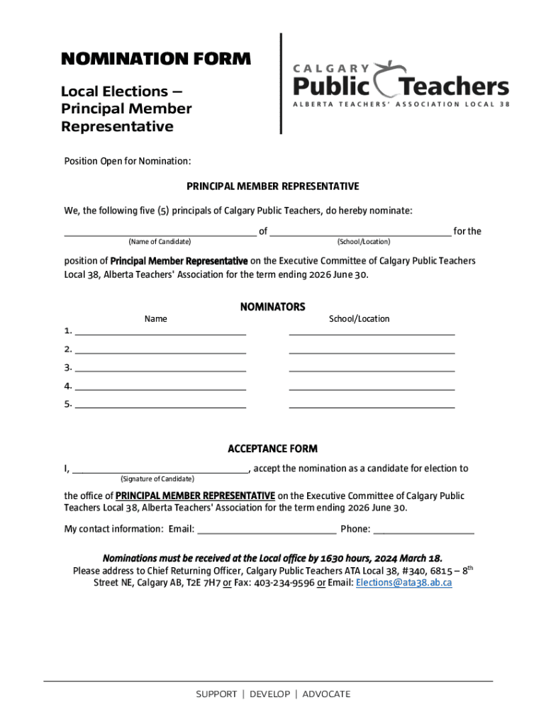 We, the following five (5) principals of Calgary Public Teachers, do hereby