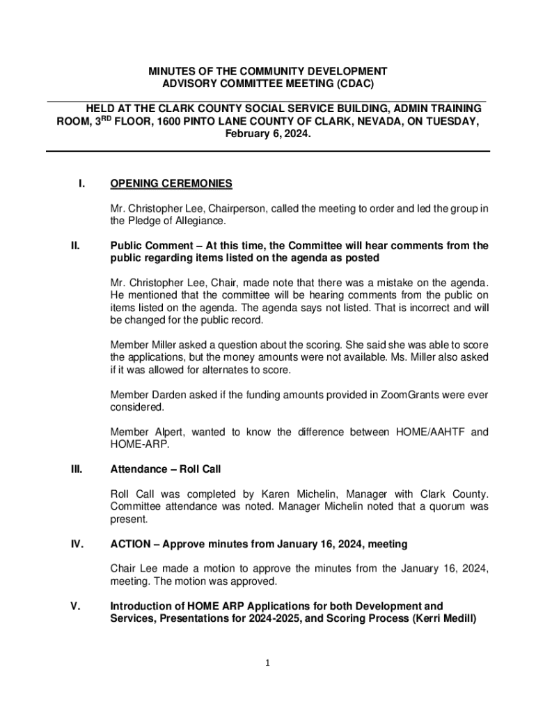 MINUTES OF THE COMMUNITY DEVELOPMENT ADVISORY COMMITTEE MEETING (CDAC) ___ HELD AT THE CLARK COUNTY SOCIAL SERVICE BUILDING, ADMIN TRAINING ROOM, 3RD FLOOR, 1600 PINTO LANE COUNTY OF CLARK, NEVADA,
