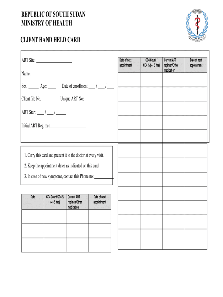 Get the free CLIENT HAND HELD CARD REPUBLIC OF SOUTH SUDAN ... - pdf usaid