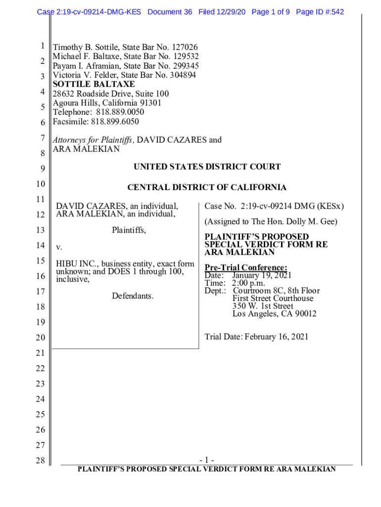 Get the free plaintiff's proposed special verdict form re ara malekian - law lclark