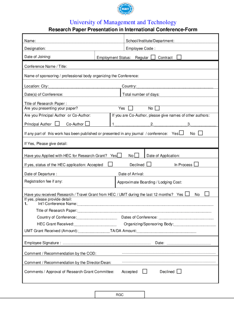 Research Paper Presentation in International ConferenceForm