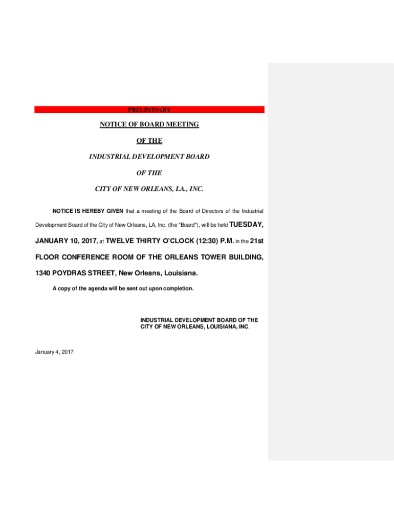 PRELIMINARYNOTICE OF BOARD MEETING