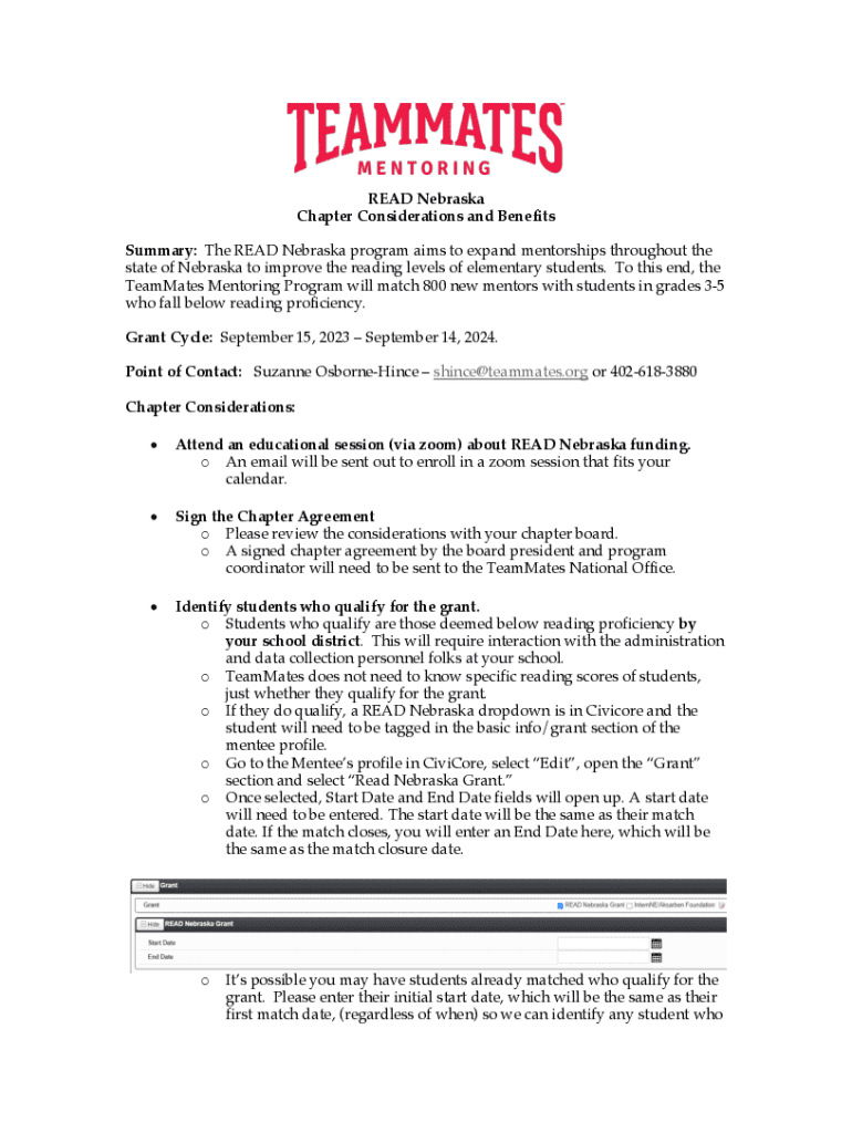 Summary: The READ Nebraska program aims to expand mentorships throughout the