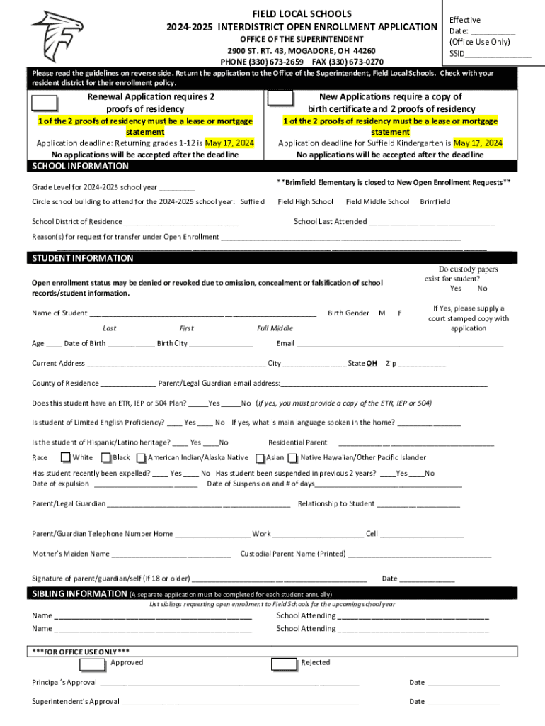 20242025 INTERDISTRICT OPEN ENROLLMENT APPLICATION