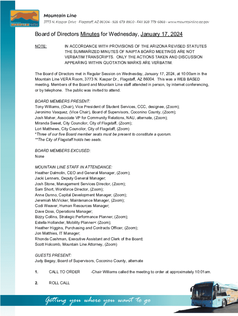 Get the free VERBATIM TRANSCRIPTS - mountainline az