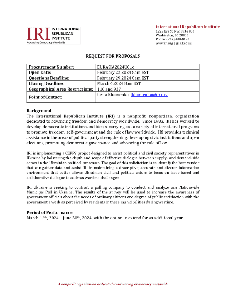 www.iri.org | @IRIGlobalREQUEST FOR PROPOSALS