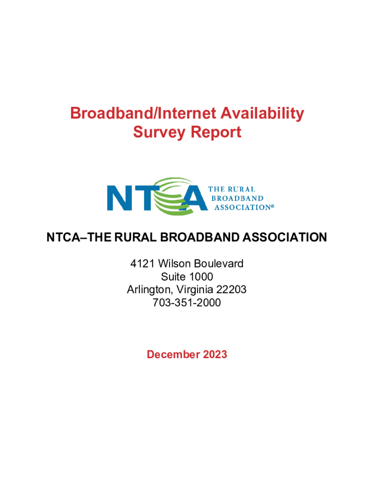 Broadband/Internet Availability Survey ReportNTCATHE RURAL BROADBAND ASSOCIATION 4121 Wilson Boulevard Suite 1000 Arlington, Virginia 22203 7033512000December 2023Table of ContentsIntroduction .........................................................................................................