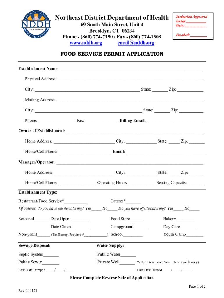 Northeast District Department of Health 69 South Main Street, Unit 4 Brooklyn, CT 06234 Phone (860) 7747350 / Fax (860) 7741308 www.nddh.org email@nddh.orgSanitarian Approved Initial: Date: Emailed:FOOD