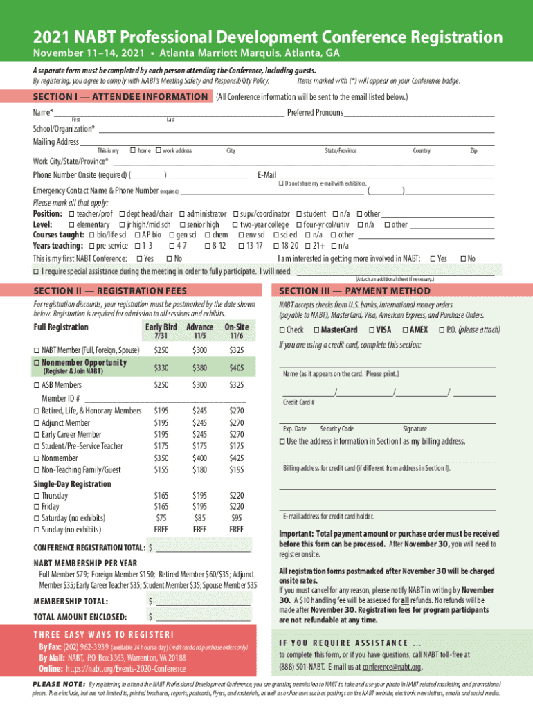 November 1114, 2021 Atlanta Marriott Marquis, Atlanta, GAA separate form must be completed by each person attending the Conference, including
