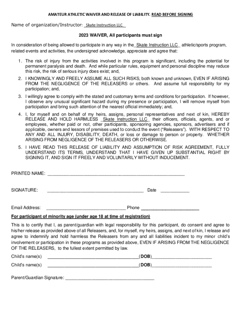 Get the free Name of organization/Instructor: Skate Instruction LLC