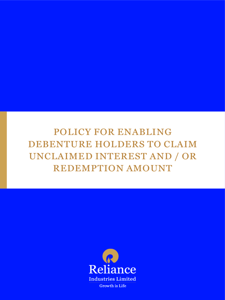 POLICYFORENABLING DEBENTUREHOLDERSTOCLAIM UNCLAIMEDINTERESTAND/OR REDEMPTIONAMOUNTContents1. Introduction22. Scope23. TermsandDefinitions24. Policy2AnnexureI501RELIANCEINDUSTRIESLIMITEDPOLICYFORENABLINGDEBENTUREHOLDERSTOCLAIMUNCLAIMEDINTERESTAND/ORREDEMPTIONAMOUNT1.