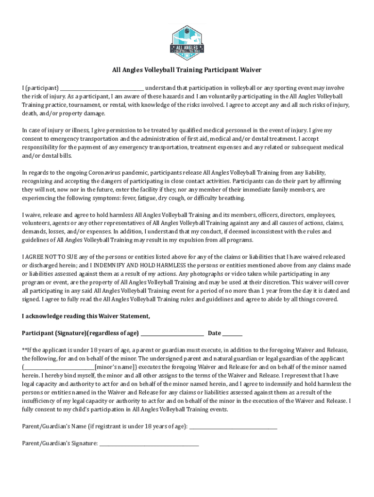 Get the free All Angles Volleyball Training Participant Waiver