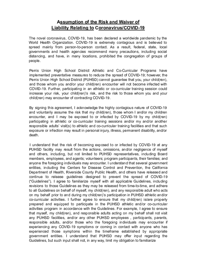 Get the free A ssumption of the Risk and Waiver of Liability Relating to C ...