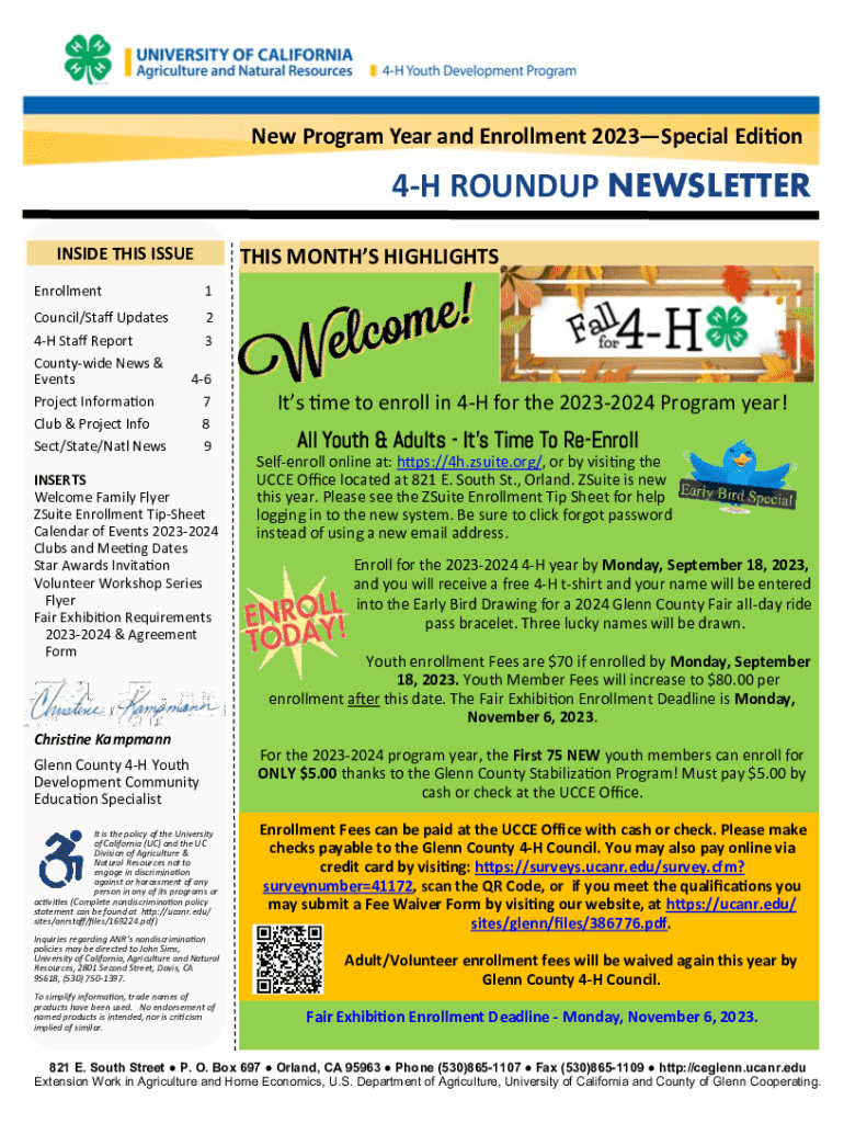 January 2015 Newsletter Program Year and Enrollment 2023Special Edition4H ROUNDUP NEWSLETTER