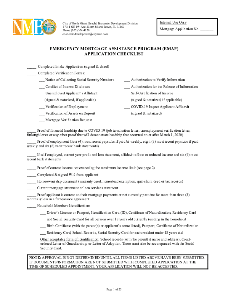 City of North Miami Beach | Economic Development Division 17011 NE 19th Ave, North Miami Beach, FL 33162 Phone (305) 3544120 economicdevelopment@citynmb.comInternal Use Only Mortgage Application No.