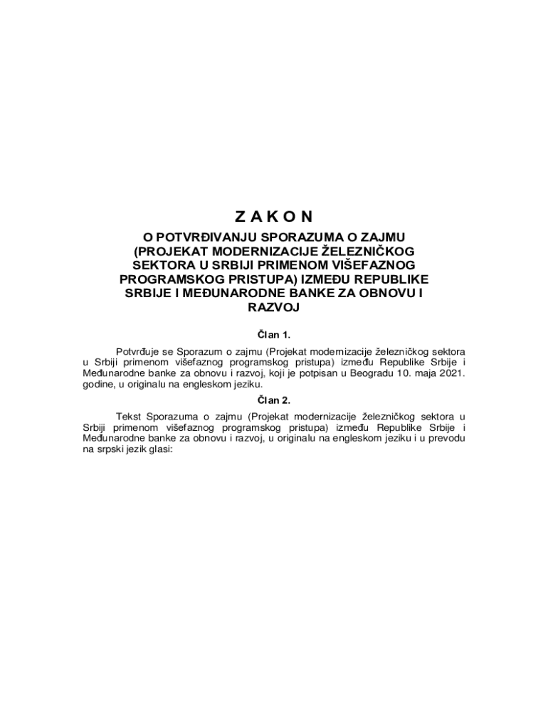 ZAKON O POTVRIVANJU SPORAZUMA O ZAJMU (PROJEKAT MODERNIZACIJE ELEZNIKOG SEKTORA U SRBIJI PRIMENOM VIEFAZNOG PROGRAMSKOG PRISTUPA) IZMEU REPUBLIKE SRBIJE I MEUNARODNE BANKE ZA OBNOVU I RAZVOJ lan 1.