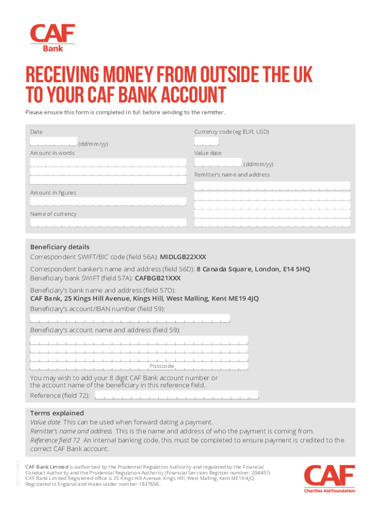 Get the free Receiving money from outside the UK to your CAF Bank ...
