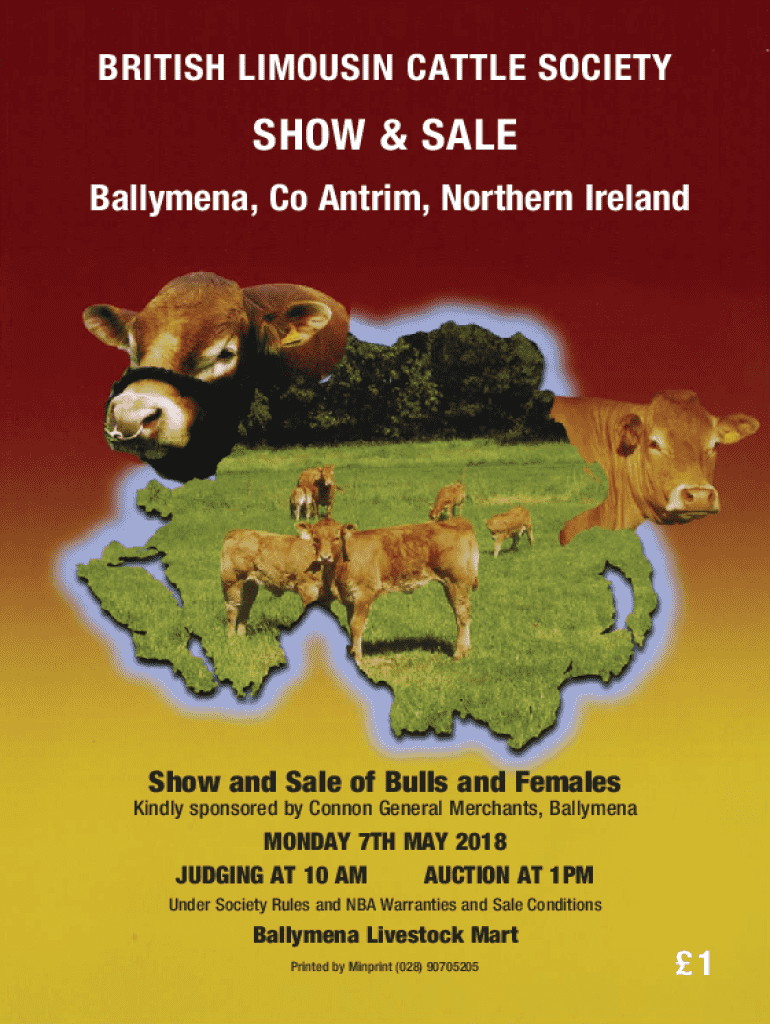 Ballerina, Co Antrum, Northern IrelandShow and Sale of Bulls and FemalesKindly sponsored by Cannon General Merchants, BallymenaMONDAY 7TH MAY 2018