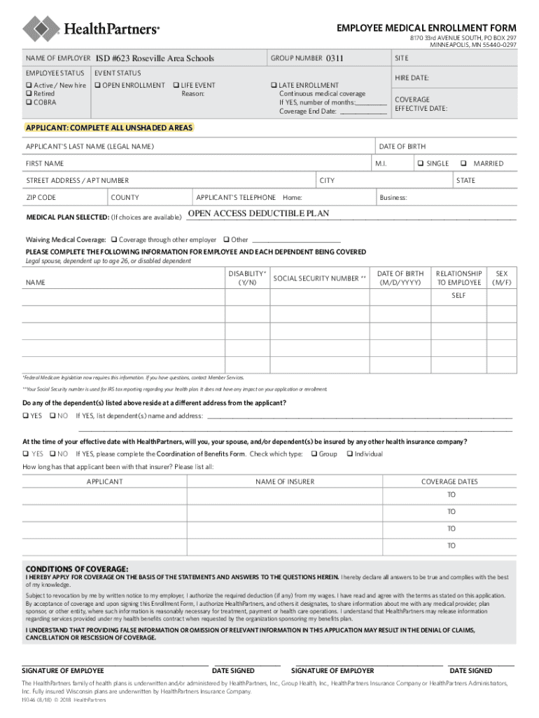 Get the free Health Partners Employee Medical Enrollment - Waiver Form